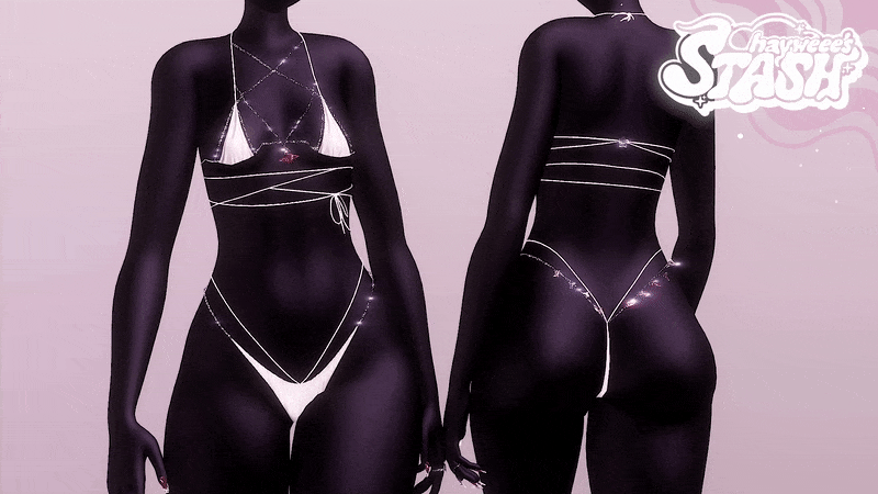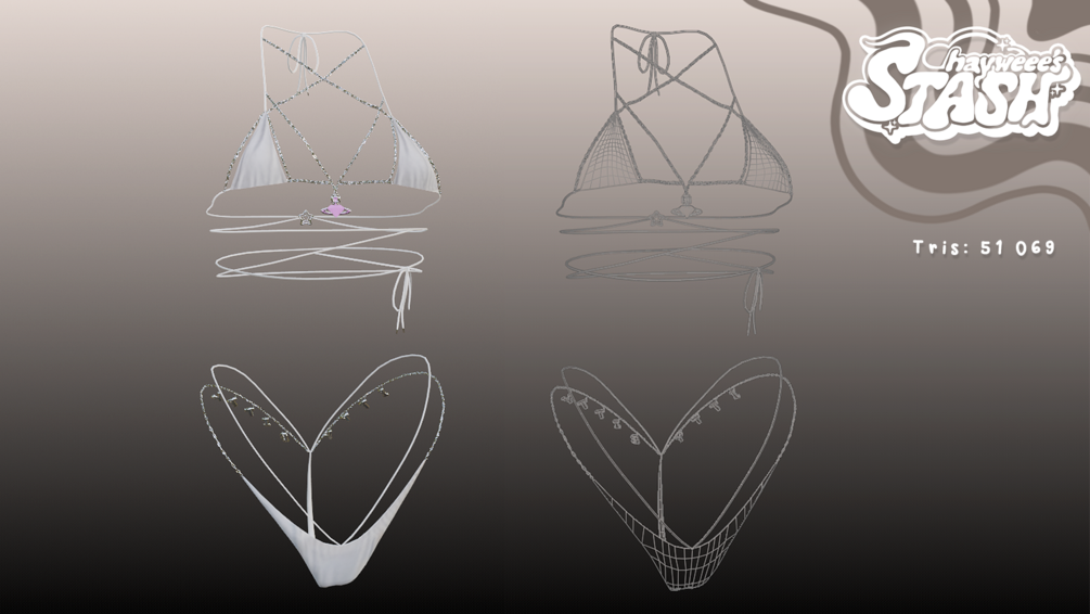 ⇢ 4 Materials (2 metals, bikini top, bikini bottom)