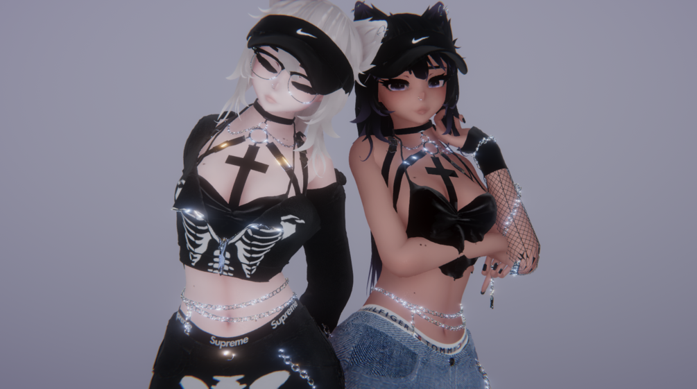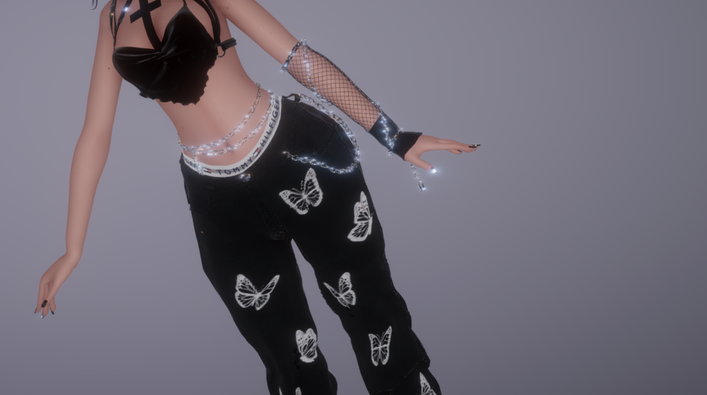 Credits || Head - Nikkie#0088 / Hair, Chest Garter, Nipple Rings - Darcy#0005 / Body - Pandaabear#9873 / Nails - Cicieaaa#7777 / Shoes - Sache#8302 / Butterfly Ring - glitch#0112 / Waist Chain - Lolo#5454 / Animations - Dogu#0271 & Sam#6069 / Ears - Inky#1000 / Top - Sims, Glasses - velvet#0888 / Jeans, Underwear, Hoodie, Visor - made from scratch by me (Hayweee#1999)